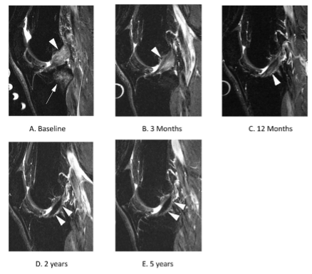 Filbay, S. R., Roemer, F. W., Lohmander, L. S., Turkiewicz, A., Roos, E. M., Frobell, R., & Englund, M. (2023). Evidence of ACL healing on MRI following ACL rupture treated with rehabilitation alone may be associated with better patient-reported outcomes: a secondary analysis from the KANON trial. British journal of sports medicine, 57(2), 91–98. https://doi.org/10.1136/bjsports-2022-105473